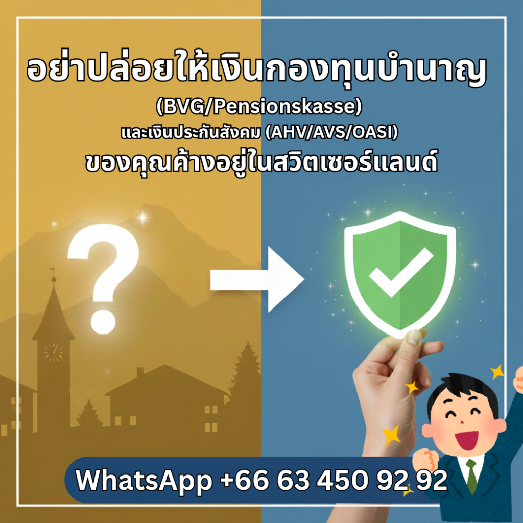 อย่าปล่อยให้เงินกองทุนบำนาญ (BVG/Pensionskasse) และเงินประกันสังคม (AHV/OASI) ของคุณค้างอยู่ในสวิตเซอร์แลนด์ เราช่วยคุณดำเนินการขอรับเงินคืน